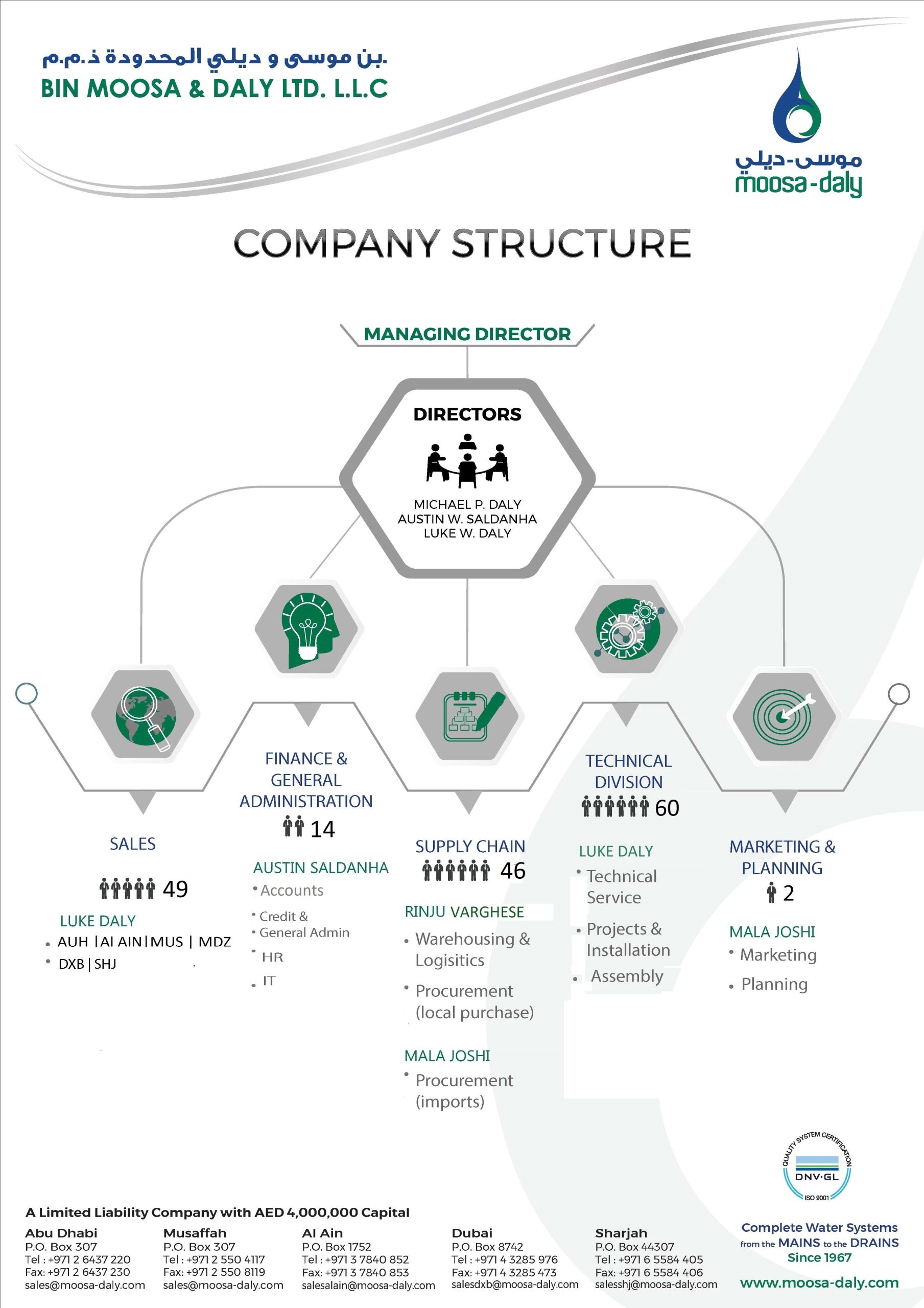 Bin Moosa & Daly LTD LLC was established in 1967 by Michael F. Daly to service the emerging Abu Dhabi market. Our product portfolio includes pumps, pump sets, pool & spa equipment, pipes, electric and solar water heaters, water meters, corrosion prevention and sealing technology, oil & grease separators, floor drains and covers, house connections, taps, showers and valves, manhole covers, hazardous area lighting and others.